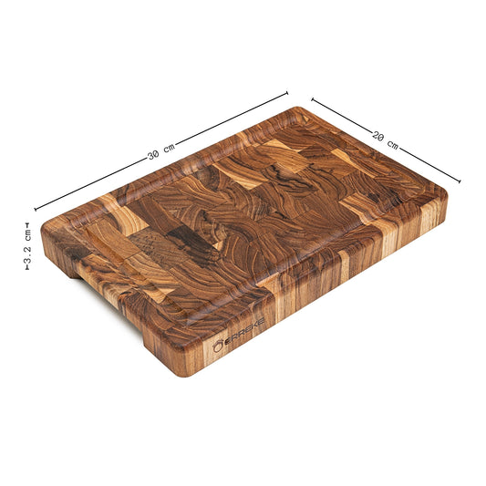 NEW ARRIVAL Tabla Cortar Cocina RIO, Madera de Teca End Grain Grosor 3.2 cm, Resistente, Servir Embutidos Queso Pan, 30x20.5x3.2 cm