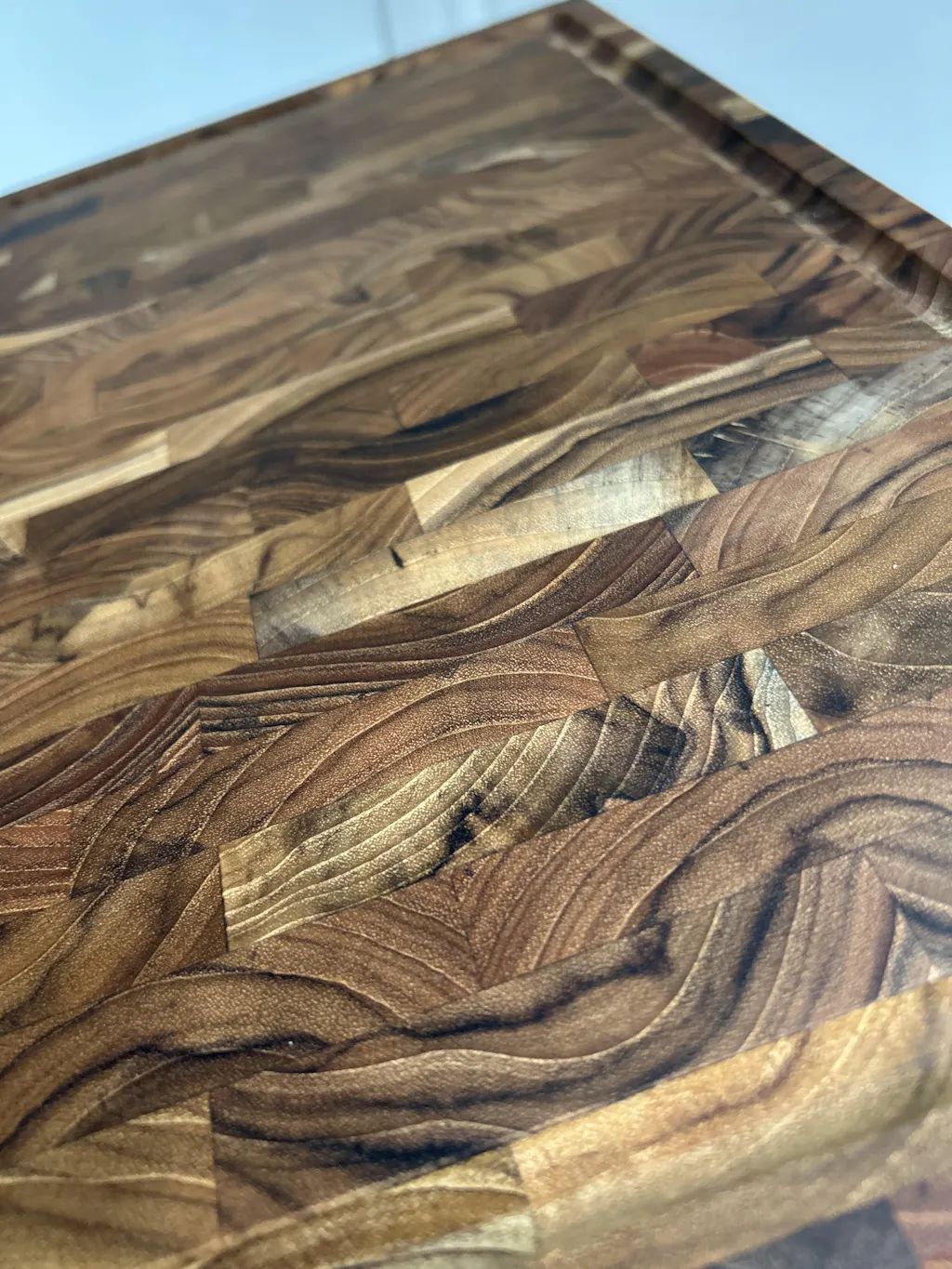 XL Chopping Board in Natural End Grain TEAK Wood BALI, Reversible, Kitchen or BBQ, Serve Meat Cheese Bread, 44x30x3.2cm (juice slot)