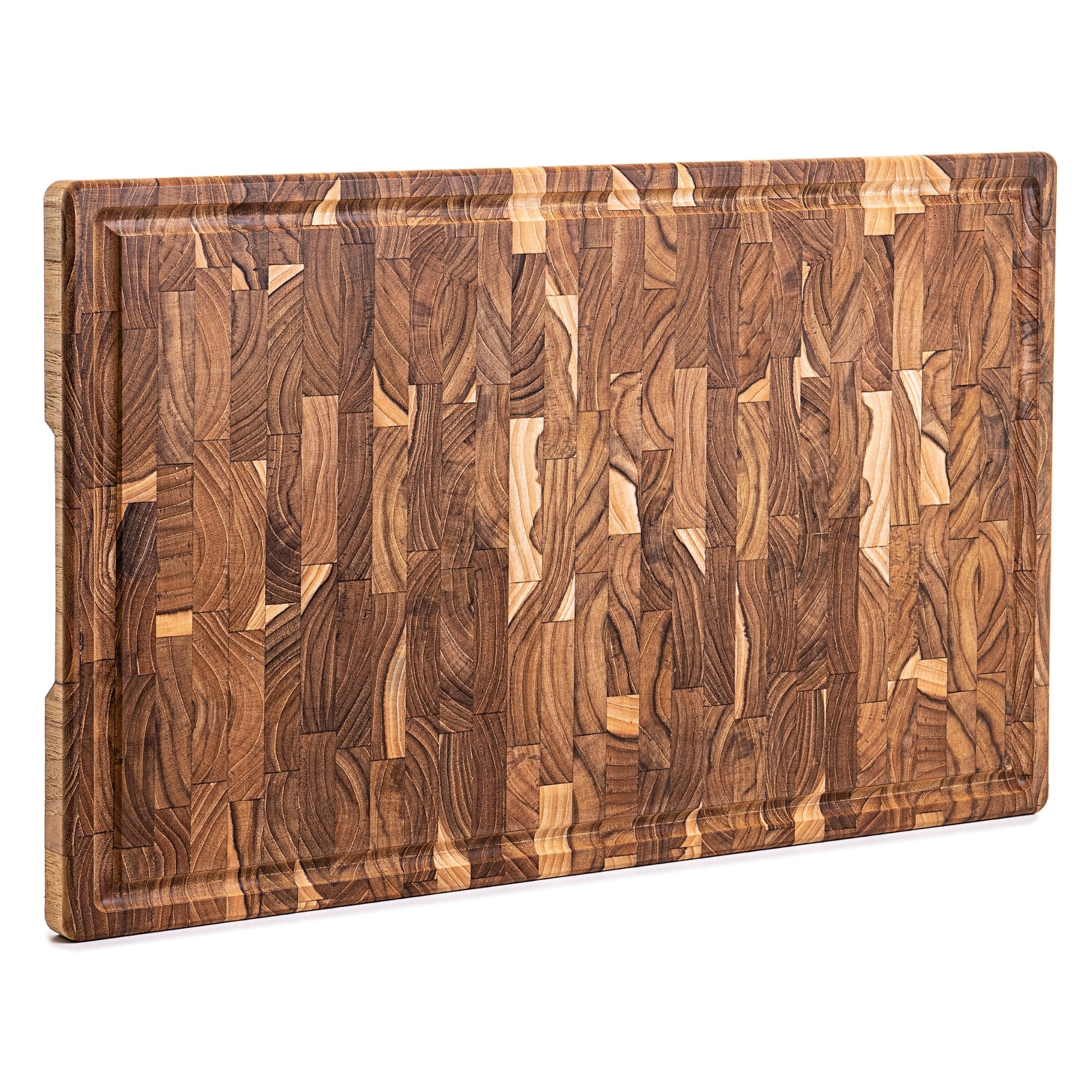 Tabla de Cortar XXL en Madera TECA Natural SIDNEY, End Grain, Bases Antideslizantes, Ideal Cocina o Barbacoa, Servir Carne Queso Pan, 58x38x3,2cm (ranura para jugos)