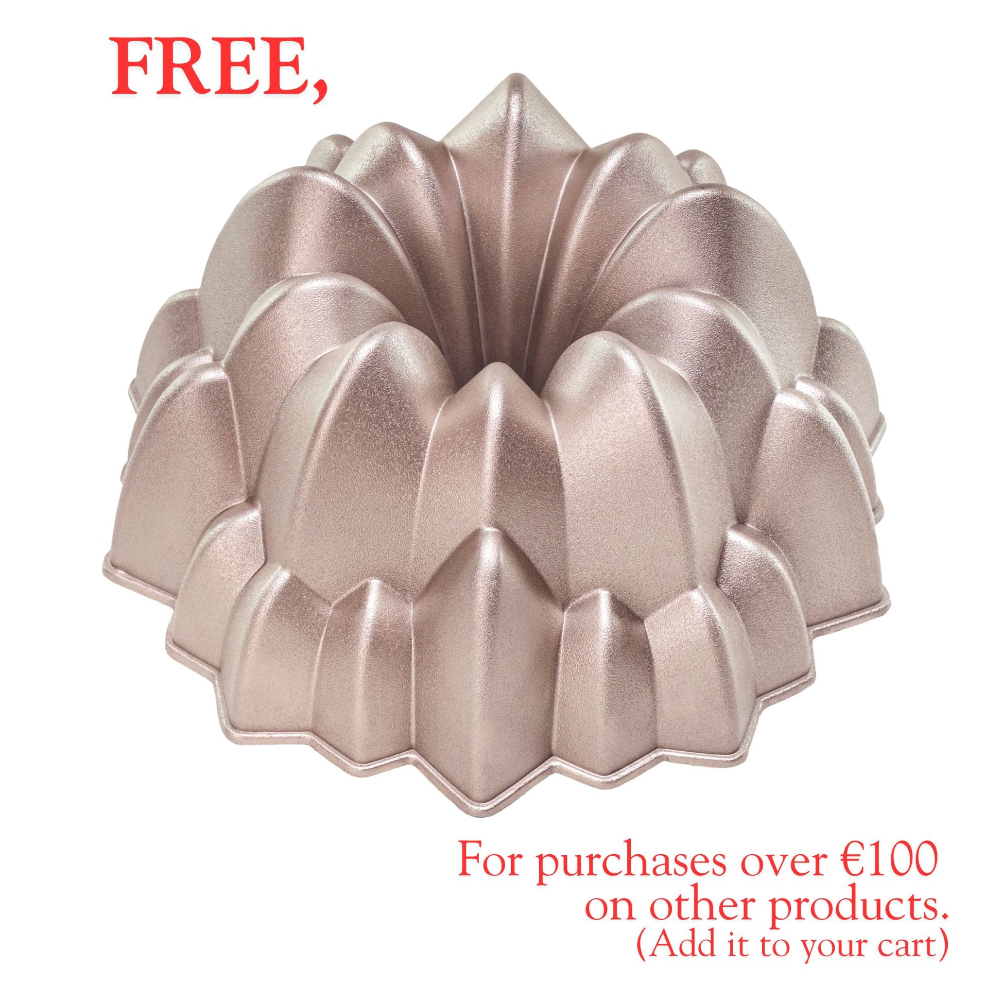 Molde CASCADA, bizcocho y tarta para horno, doble capa antiadherente, aluminio fundido de larga vida, Cocción Uniforme, Color Oro Rosa, diámetro 24cm, alto 11 cm, 2 litros.