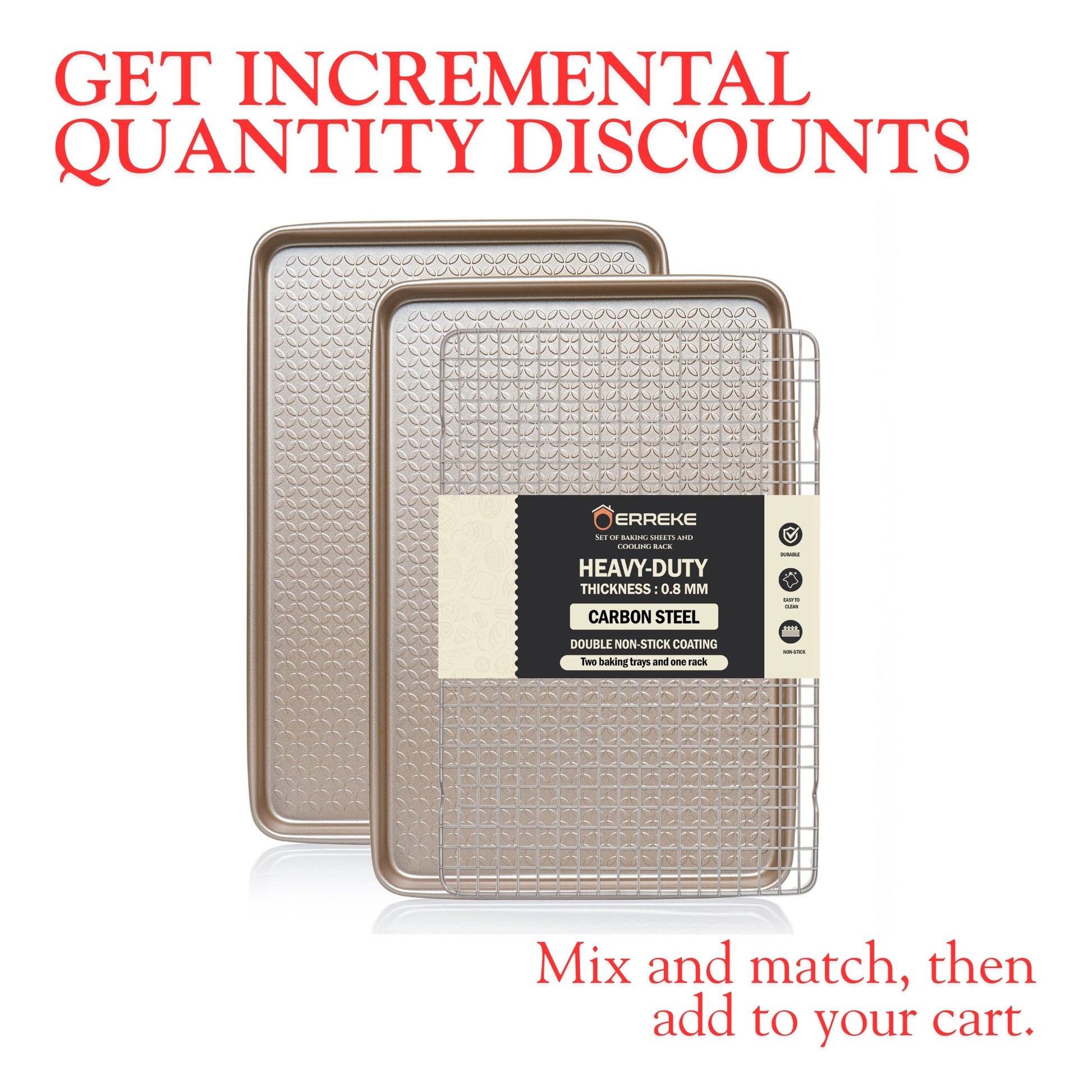 Set de Bandejas de Horno con Rejilla, acero al carbono 0.8 mm, doble capa antiadherente, ideal para repostería y asados, 40×27 cm