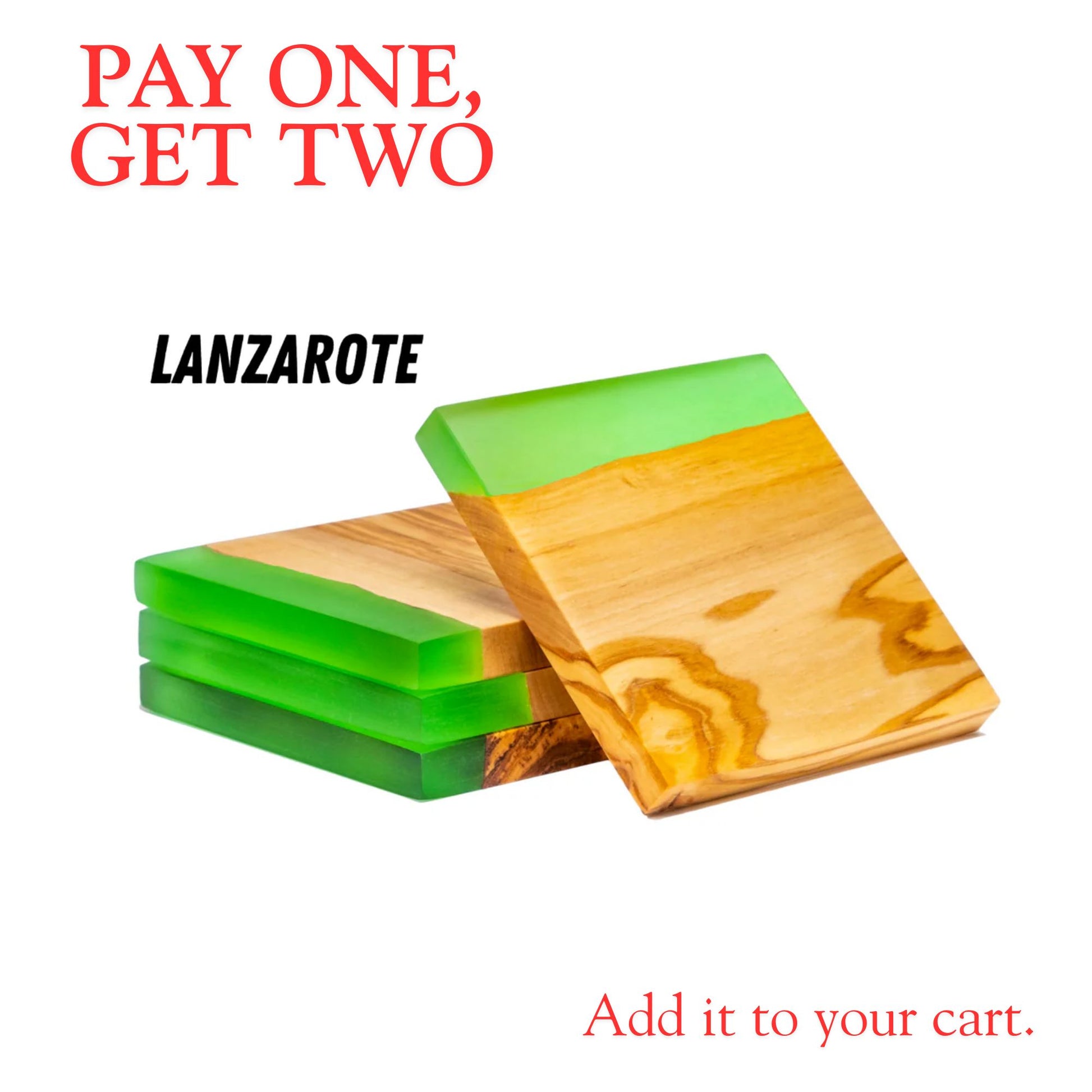 Conjunto de 4 bases para copos originais em madeira de oliveira natural e resina epóxi LANZAROTE, xícaras, copos, 10x10x1,2 cm (verde)